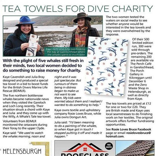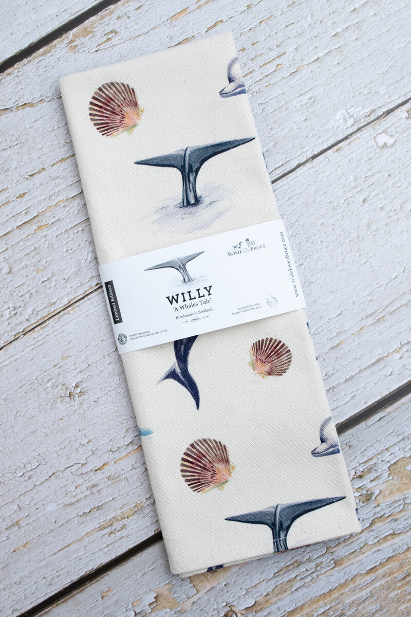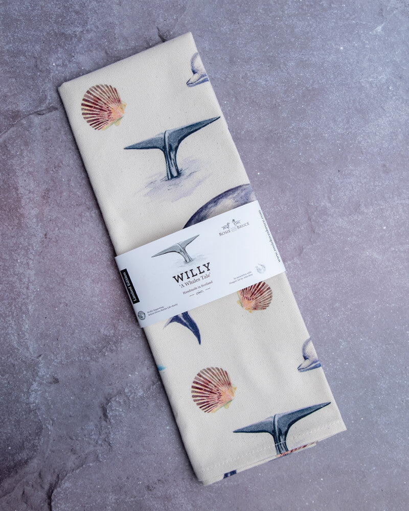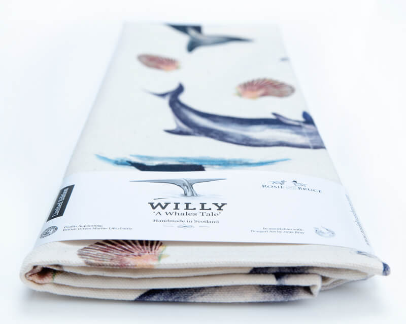 Wallowing in the Gareloch, Willy swims with his beautiful tail, spinning a limited edition charity tale. Willy’s also a generous creature because 10% of all proceeds go to the British Divers Marine Life Rescue who look after Willy and his magnificent friends so well.